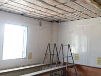 ![]() 寮 天井・壁 ボード貼 |